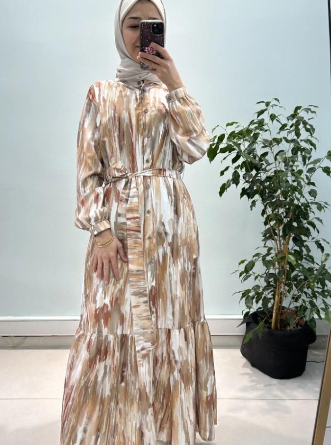Kolları ve ön kısmı düğmeli elbisemizin içi kolları dahil astarlıdır.