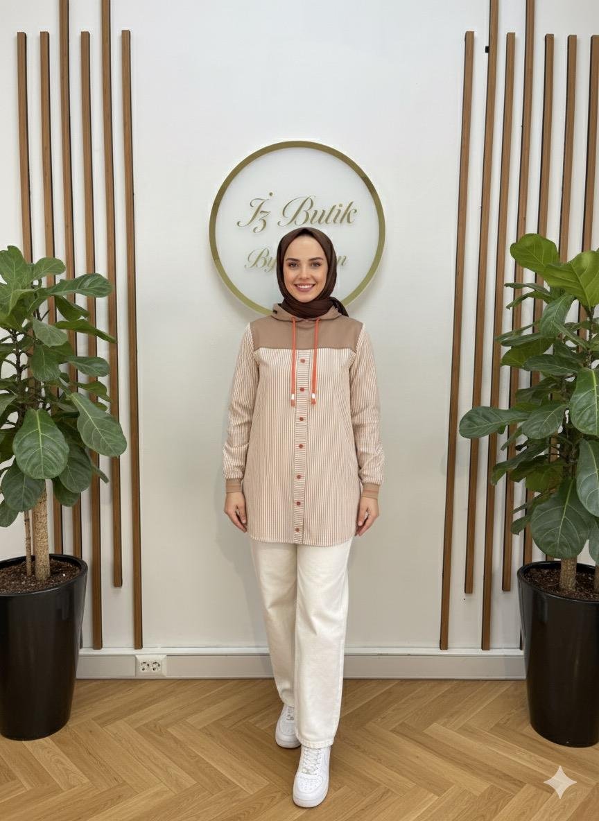Gömlek kumaşa sahiptir. Kapüşonludur.