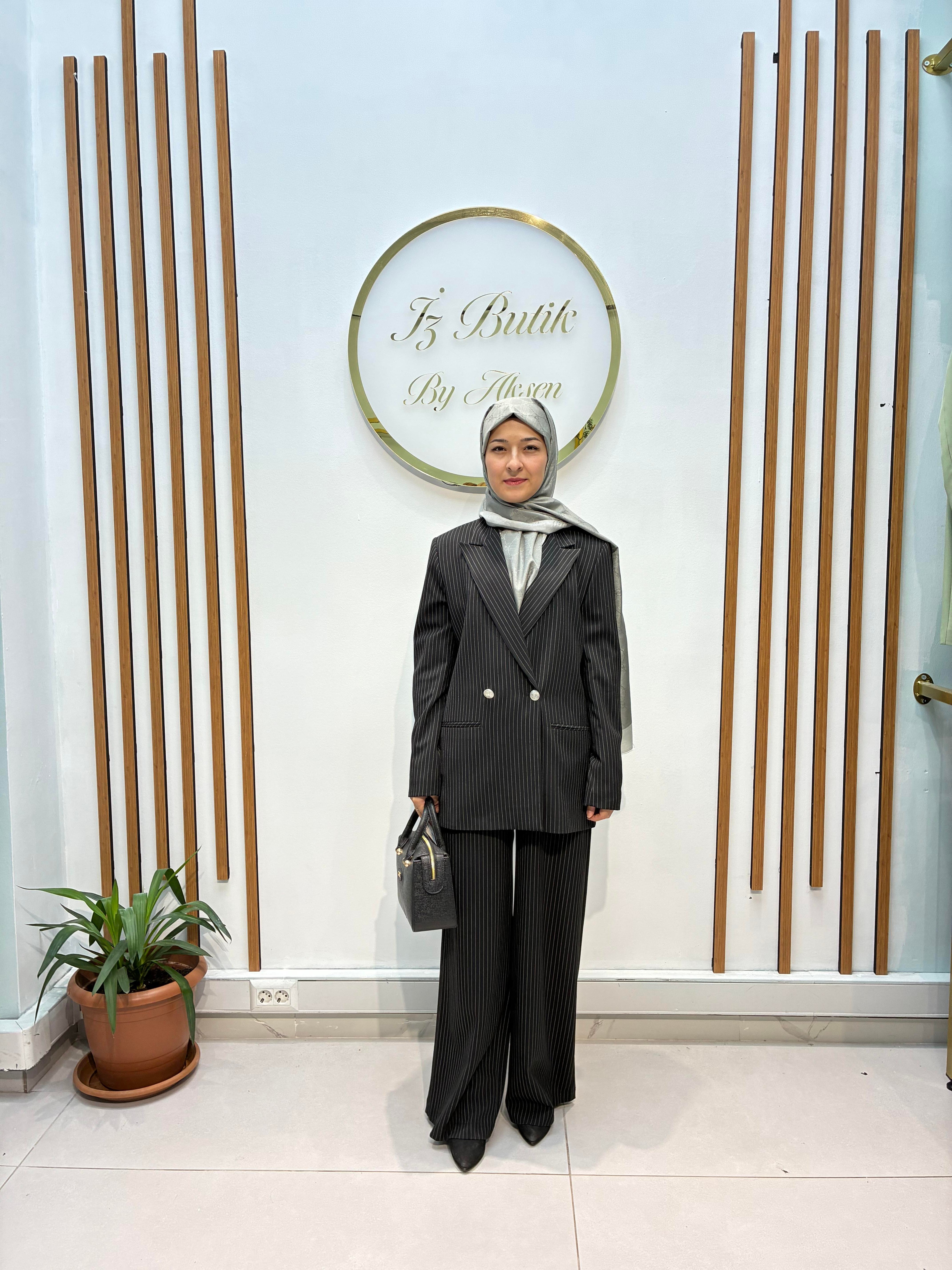 Siyah Çizgili Nihan Geniş Paça Pantolon